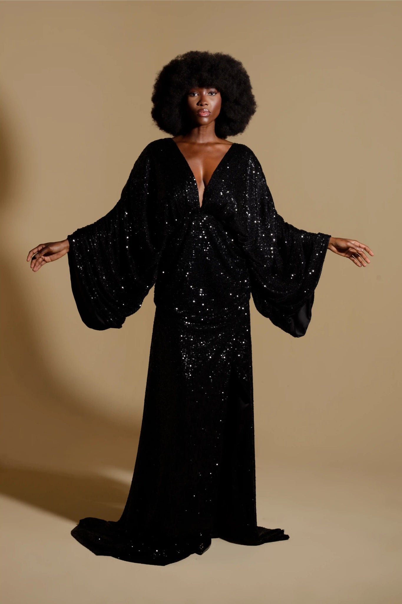 Introducing the NOTTE, an incandescent jewel from the venerated ORIGEN collection, where the ancestral craft meets contemporary allure. This is more than an attire; it is an audacious embrace of the night, a sartorial masterpiece destined to command every gaze.